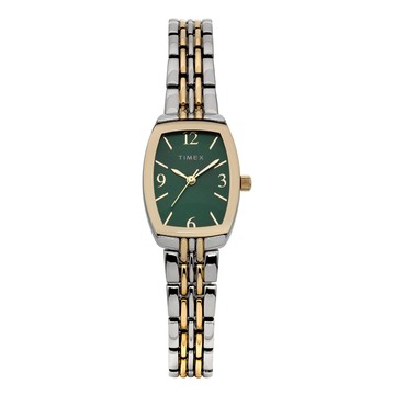 【TIMEX】天美時 Charlotte 21 毫米 方形 秀氣 復古風格 雙色鍊帶女錶 綠 TXTW2Y22300
