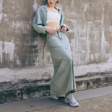 點我下載OB嚴選 時髦水洗刷色中低腰丹寧裙 《CA3082》