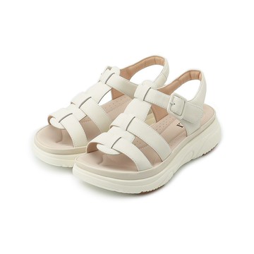 LUZZI 真皮魔鬼氈羅馬涼鞋 白 女鞋