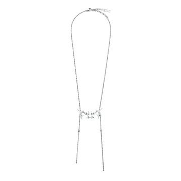 RJ New York 單鑽四葉草鏤空幾何雙圈鎖骨項鍊(銀色)