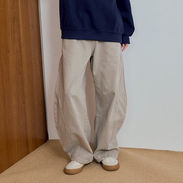 板栗研衣所 | 支線GM 豆漿白斜紋紗卡純棉單層中腰松緊休閒卡其褲