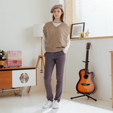 【CUMAR】鬆緊腰釦飾內磨毛彈性窄褲 黑 灰