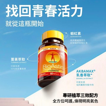 【1月限定-5折專區】新品上市~BioAstin-紅藻蝦紅素薑黃膠囊(60顆/瓶)(TW)蝦青素 95%純度印度薑