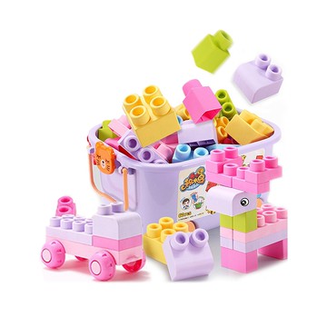 【Hi-toys】40PCS益智拼裝超大軟積木收納箱拉車(可水煮消毒)