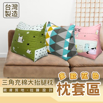 三角抬腿枕(小) 單枕套賣場 不含枕心 多款花色 拉鍊式枕套 台灣製造