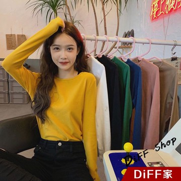 【DIFF】韓版薄款內搭打底素色長袖上衣 女裝 衣服 寬鬆上衣 顯瘦上衣 素色 冬裝 長袖t恤 素T【W103】