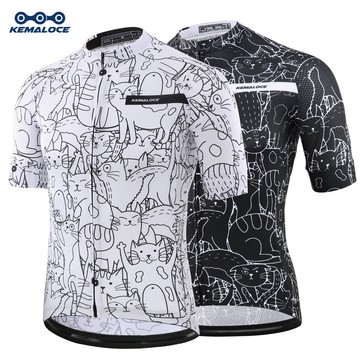 KEMALOCE 透氣排汗 車衣 自行車衣 騎行服 短袖車衣 男腳踏車車衣 白色 卡通貓 2024 滌綸 男女通用