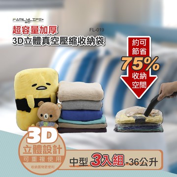 【FL生活+】D加厚超壓縮立體壓縮袋-M號 真空壓縮袋 真空收納袋 可重覆使用 棉被收納袋 棉被收納 衣櫃收納 衣物收納