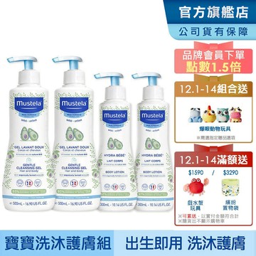 Mustela 慕之幼 寶寶洗沐護膚組(多慕雙潔乳X2+爽身潤膚乳X2) 洗髮沐浴乳+身體乳液 慕之恬廊