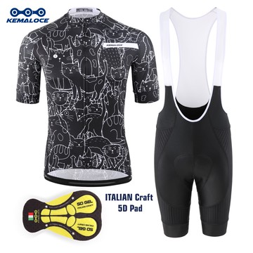 點我下載KEMALOCE 黑色卡通貓 車衣 自行車衣褲 自行車衣 車衣 褲 自行車褲 5D硅膠坐墊 透氣 戶外夏季 單車短褲