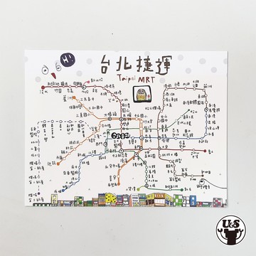 U&S 叔叔與妹妹 插畫繪製 台北捷運MRT路網圖 彩色 明信片