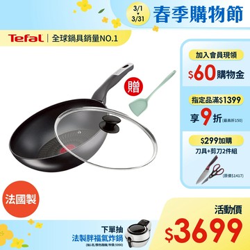 Tefal法國特福 黑白大廚使用-極上御藏系列28CM不沾小炒鍋+玻璃蓋(6倍耐用塗層)|法國製|IH爐適用 送鍋鏟
