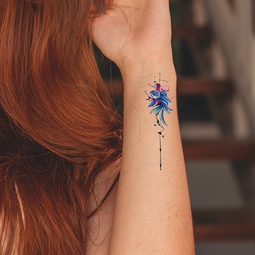 微刺青 魚 毛筆水彩潑墨👑大邱紋身👑【T08Z】新 小清新 假刺青輕紋身 防水 紋身 刺青 貼紙 T08