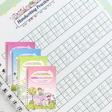 【NamiGo!】[現貨] 4冊兒童早期字帖魔法練習習字本可重複使用手寫本練習冊學生 凹槽練字本 字母/數學/繪圖/數字