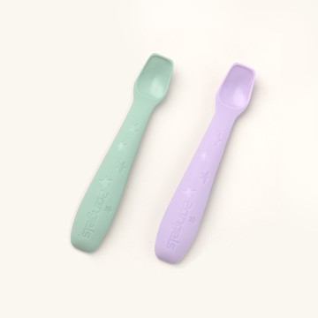 點我下載台灣製 現貨 2angels 矽膠餵食湯匙(2入) 附專用收納盒 寶寶餐具 自主用餐 副食品好物熱銷推薦 夏葉綠+紫色