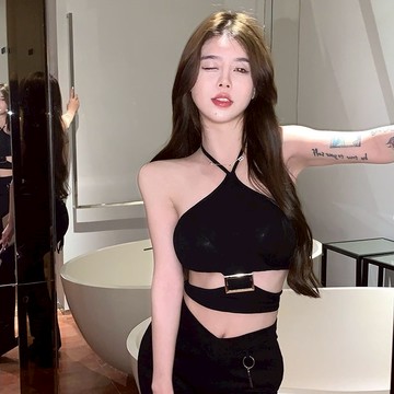 掛脖式辣妹上衣無袖爵士舞服裝短款露臍裝小眾別致設計感純欲吊帶