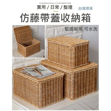 台灣現貨【紮實耐重】帶蓋編織收納籃 收納箱 收納籃 編織籃 置物籃 收納筐 編織籃 雜物箱 帶蓋收納籃 衣服收納 置物籃