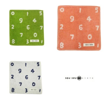 SOU SOU 日本丸真 純棉小方巾 15x15cm 數字遊戲 白色 1條