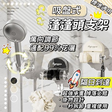 點我下載隔日到貨【吸盤牢穩🔥全網最低價】免打孔花灑架 一體式帶掛鉤萬向花灑支架 掛頭支架 淋浴噴頭吸盤底座 掛座架 蓬蓬頭支架