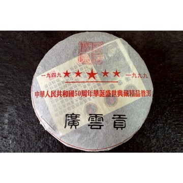 點我下載🍃【1999年 廣雲貢青餅 約380g・班章古樹嫩芽製作 古法曬青工藝 陳香足 茶韻深】普洱生茶經典老餅推薦|信德茶行