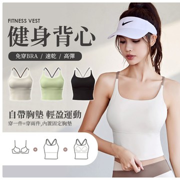 運動內衣【背心式】裸感透氣 拼色細肩帶交叉美背 抗震收腰 固定式胸墊 瑜珈背心 1109
