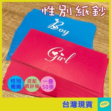 點我下載性別紙鈔 一疊50張 男寶寶性別紙 女寶寶性別紙 道具紙