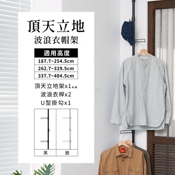 頂天立地 MIT|波浪吊掛衣帽架+U型掛勾 置物架 衣架 牆面收納 掛衣架 免鑽孔 收納層架 鐵架 收納 衣架 兩色可選