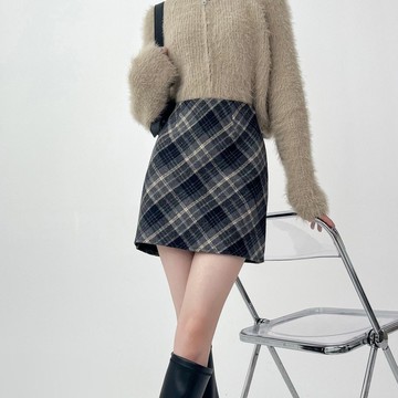 配色格紋設計毛呢短裙 兩色售 S/M