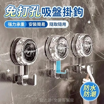 晶瑩旋轉真空吸附免釘牆強力吸盤掛勾