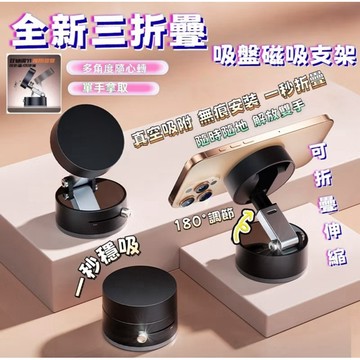 隔日達🚀【三折疊延伸👍萬向旋轉】magsafe支架 通用超穩磁吸手機架 真空吸附手機支架 汽車磁吸支架 直播手機支架