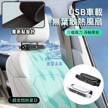 新升級 HADER USB車載無葉散熱風扇 車用座椅靜音小風扇 汽車後座排風扇【魔術貼設計 三檔風力 小巧便捷】