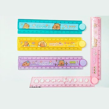 台灣出貨-超低價 卡通卡皮巴拉折疊尺子30cm塑料直尺波浪綫幾何圖案繪畵尺學生文具 兒童節禮物【活动价】