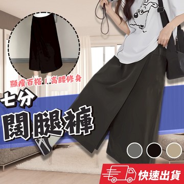 【隔日到貨】 長褲 褲裙 寬褲 7分褲 寬鬆 高腰開叉 慵懶 顯瘦 透氣 百搭 闊腿褲 M-XL