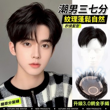 點我下載現貨隔日達🍃全新升級手織3.號網【禿頭男必備】 全真髮 假髮男紋理三七偏分 隨意分發縫 男款 短髮 自然無痕 隱形 假髮