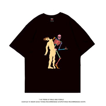 bboy寬松街頭old school重磅hiphop修女印花美式小領口短袖T恤