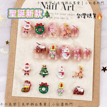 千千美學|-現貨-7款Q萌聖誕飾品(1包5入)特殊美甲飾品材料鑽飾大鑽合金屬飾品平底貼極光鏡面立體愛心蝴蝶結