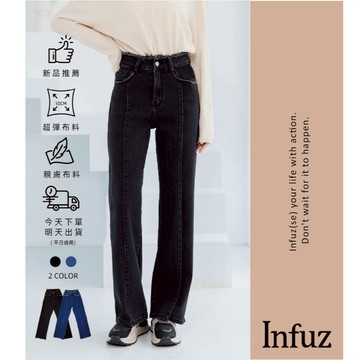 點我下載【Infuz 毛邊造型】牛仔寬褲 牛仔寬褲女 女生牛仔褲 高腰寬褲 牛仔褲 寬褲 寬褲女 超彈 牛仔褲女(JW9282)