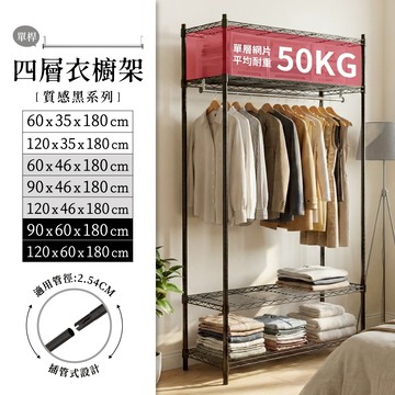 點我下載【免運】衣櫥架 多尺寸黑色四層吊衣架(附吊衣桿) 收納衣櫃 衣架 鐵架 衣櫃 衣櫥 鐵架 簡易衣櫃 層架 鐵力士衣櫥