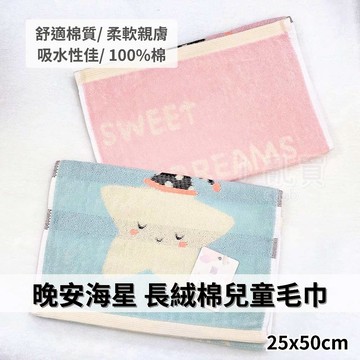 晚安海星 長絨棉兒童毛巾 || 粉彩圖案素色親膚柔軟吸水洗臉巾 高質感耐用純棉童巾小毛巾 台灣現貨 || 愛亂買