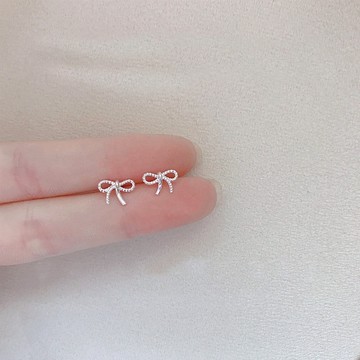 925銀蝴蝶結造型水滴鋯石耳環