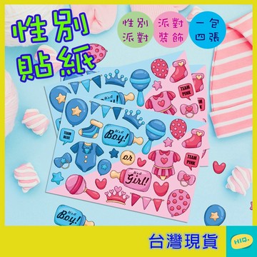 貼紙 性別貼紙 一包4張 性別揭示派對 禮物貼紙 性別佈置道具 男孩女孩貼紙 佈置貼紙 裝飾貼紙