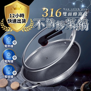 【12H出貨 316 340不鏽鋼】雙面蜂巢炒鍋 蜂巢炒鍋 不沾鍋 快速導熱 不沾炒鍋 炒菜鍋 鍋子 不銹鋼鍋