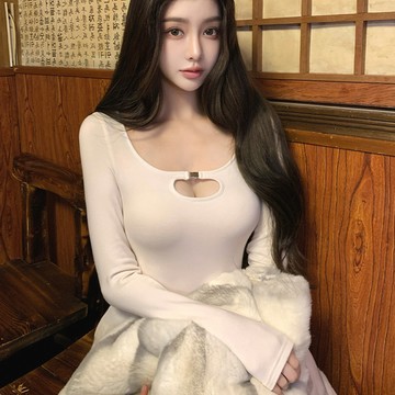 純慾風辣妹長袖T恤女設計感小衆方領性感顯胸上衣