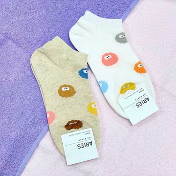 韓國襪子 短襪 彩色小精靈 台灣現貨 || 搞怪表情素底百搭正韓短筒襪 可愛小黑炭圖案中短襪子女襪 || 愛亂買