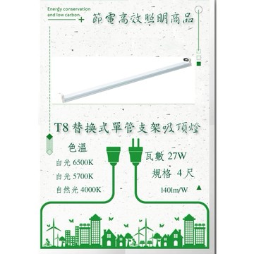 LED-高效節能T8替換式支架吸頂燈27W 4尺/單燈座台灣製造工業照明 營業照明