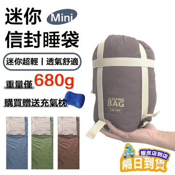 點我下載[台灣現貨12h發出]隔日達+送充氣枕 露營 登山 超輕睡袋 迷你信封睡袋 680克 野營 戶外 可拼接睡袋