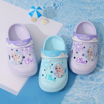 拖鞋 涼鞋 迪士尼冰雪奇緣艾莎公主形象洞洞鞋 女孩花園公主鞋 兒童室外拖鞋 懶人鞋 F2361
