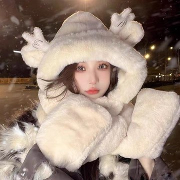 立刻下載免運🔮龍寶帽子秋冬女圍巾手套一體連帽冬季圍脖可愛保暖毛絨冬天三件套加厚毛線帽大頭圍堆堆帽 圍巾帽 保暖雪帽 賞雪帽