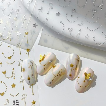 點我下載燙金星月美甲貼紙 蝴蝶愛心珍珠鏈金屬感指甲貼紙 美甲裝飾貼 手工DIY美甲材料 穿戴甲素材 高質感貼紙