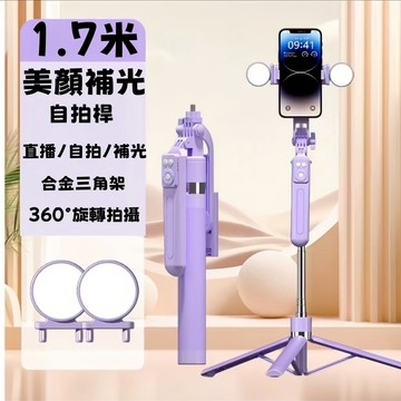 u-ta不鏽鋼168公分超長延伸腳架自拍桿P07(加碼贈補光燈)黑色+補光燈